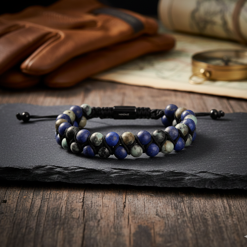 Eleganta Mindvit zīmola dabīgo akmeņu aproce vīrišiem. Rūpīgi rokām darināta no lazurīta un tirkīza akmeņiem. Aproce vīriešiem, kuri ir ceļā uz savu labāko šīs dzīves versiju!