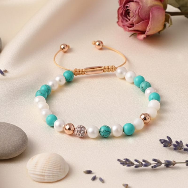 ”Akvamarīna + shoushan + pērles” – domu spēka aproce sievietēm